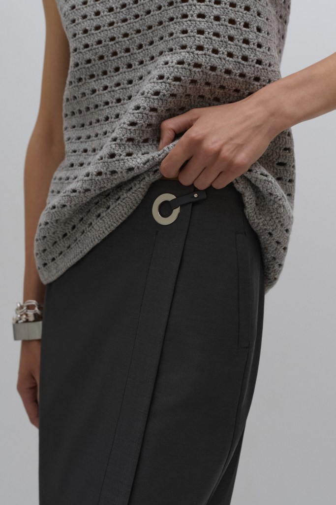 Founder and architect Daria Plaksyuk’s vision comes to life in this collection, which combines bestsellers from previous collections with new colors and materials. The foundation of the AW24 Collection comprises eco-leather trousers, a suit featuring palazzo pants and a long A-line vest, straight skirts, and architectural minimalist A-line dresses. These pieces are complemented by knitted garments crafted from merino and cashmere, meticulously reproducing various architectural textures and elements.