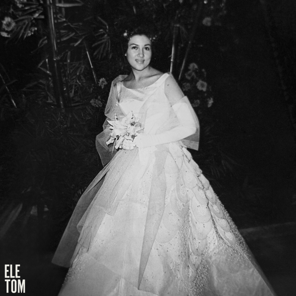 Around that time, women wore modern versions of the Traje de Mestiza ( a contemporary version of the Filipino women’s national costume: the Maria Clara). At the same time, the rise of Christian Dior’s new look, with its nipped waist and voluminous billowy skirt, influenced the younger crowd.