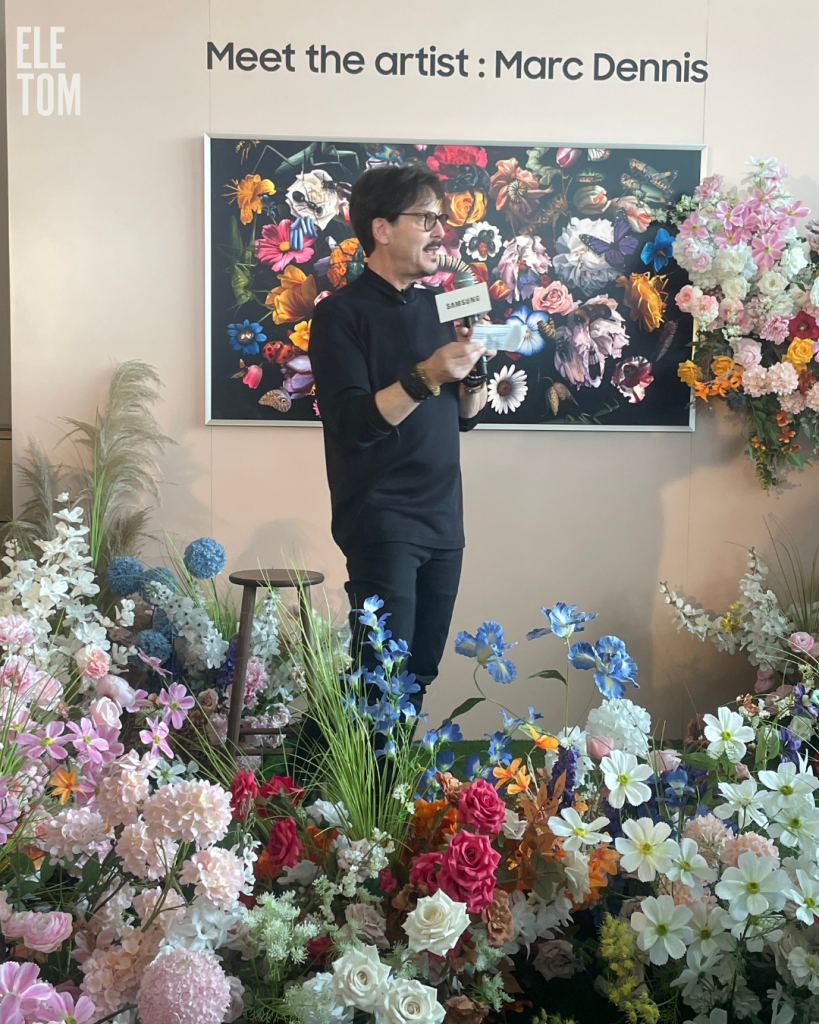 Renowned for his hyper-realistic paintings, Marc Dennis shared insights into his distinctive artistic practice, which fuses classical Old Master techniques with contemporary themes to create provocative and enduring work. “ulike in traditional museums, Samsung Art TVs allow people to spend as much time as they want with artworks,”” Dennis noted. “That matters to me because my work is rich in detail.”” His collaboration with Samsung underscores how technology can deepen our interaction with art.