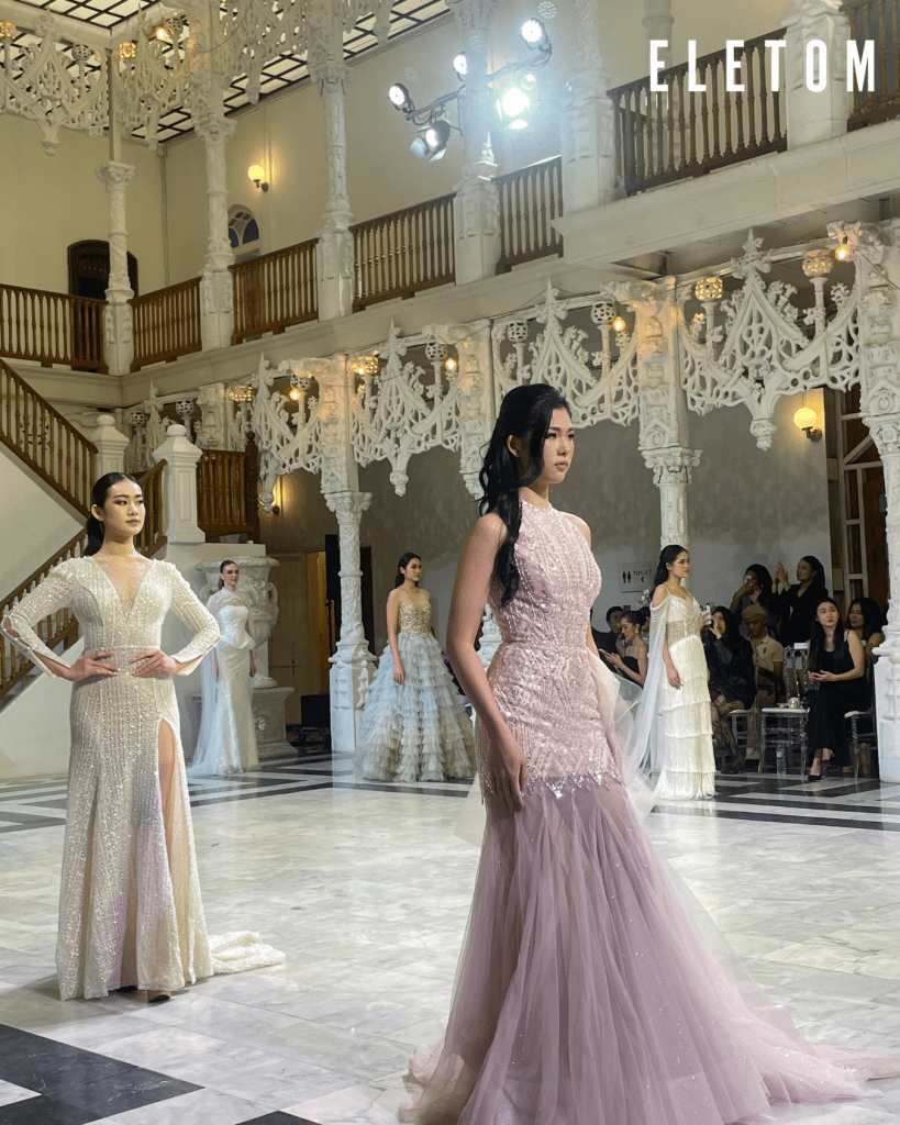After a brief intermission—featuring a dazzling turn on stage by Miss Universe Krabi—Hong Kong–based bridal and eveningwear label Bunny Nana presented a breathtaking series of custom gowns that sparkled with every step. Her work, known for its narrative elements, showcased her remarkable skill in weaving storytelling into haute couture.