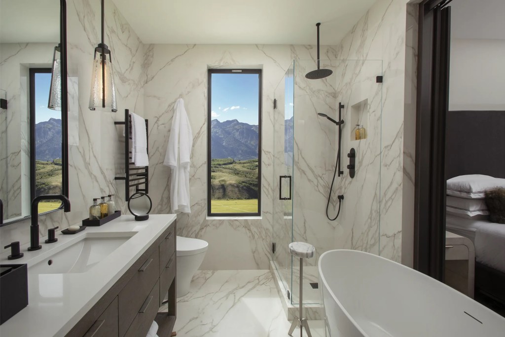 The lighting is soft and amber, the kind that invites you to soak in the deep, freestanding tub and forget about perfection. After a day of hiking in the shadow of the Tetons, you don’t need a vanity mirror. What you need is serenity. The service, too, was quietly impeccable: attentive without intrusion, refined without pretension.