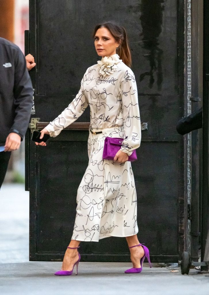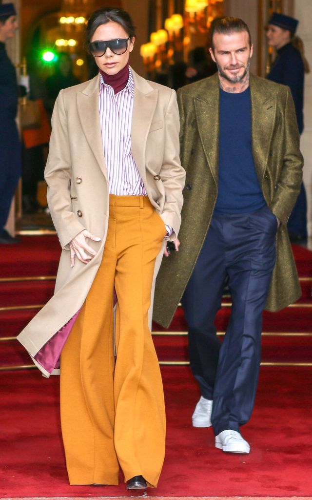 Well-cut pants are a staple in Beckham’s wardrobe. She wears them again and again, usually opting for high-waisted styles with a long leg that skims the floor and instantly makes an outfit feel more polished.