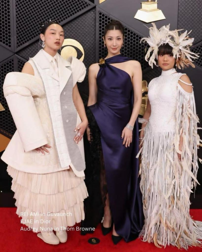 The trio behind the voices of Netflix’s K-Pop Demon Hunters turned heads on the red carpet wearing standout haute couture creations from Thom Browne, Dior, and Guvaunch. Later in the evening, Rei, EJAE, and Audrey were called to the stage to accept the Best Song Written for Visual Media Award for their hit song, GOLDEN.